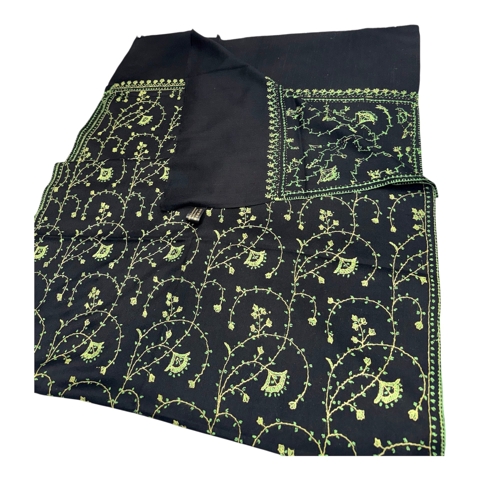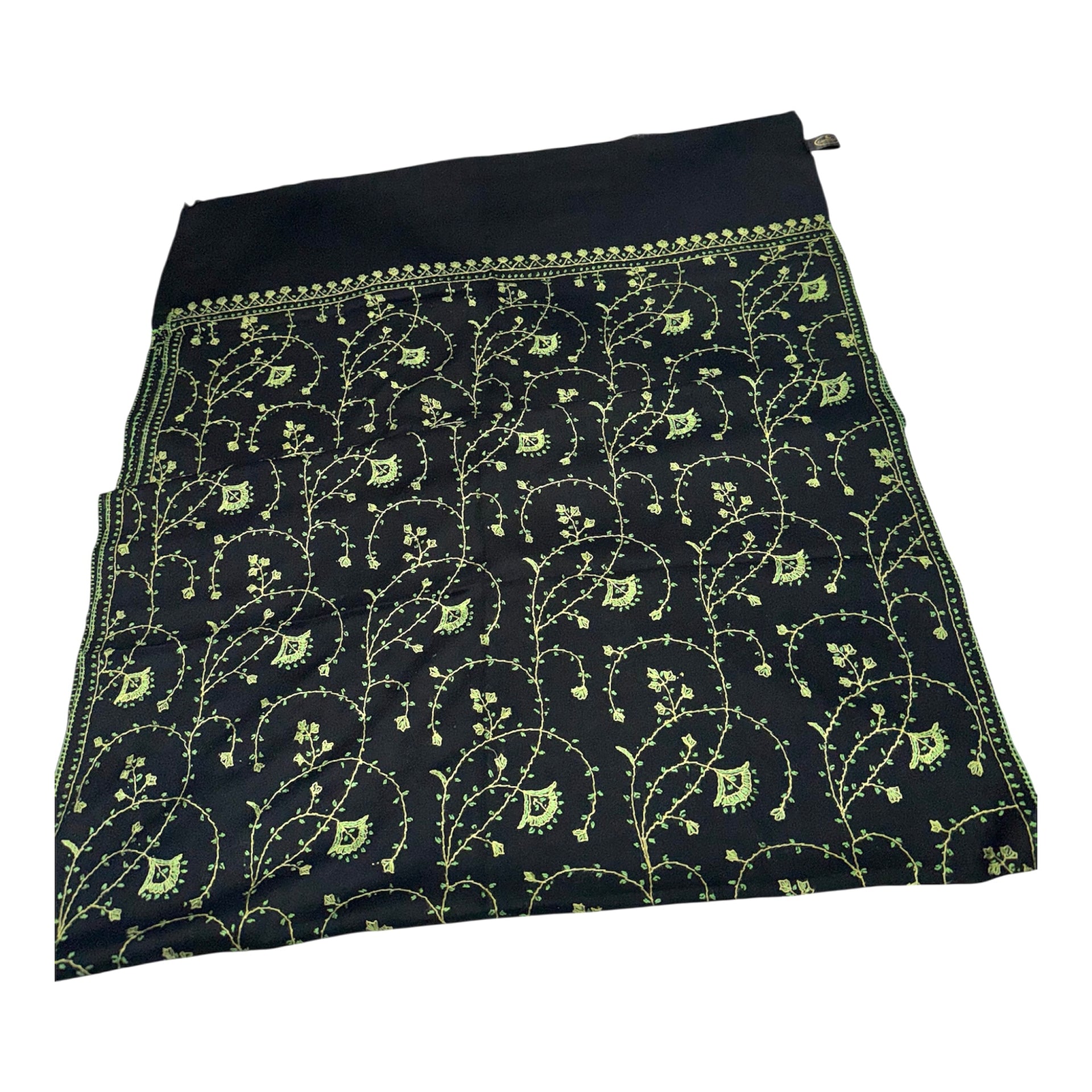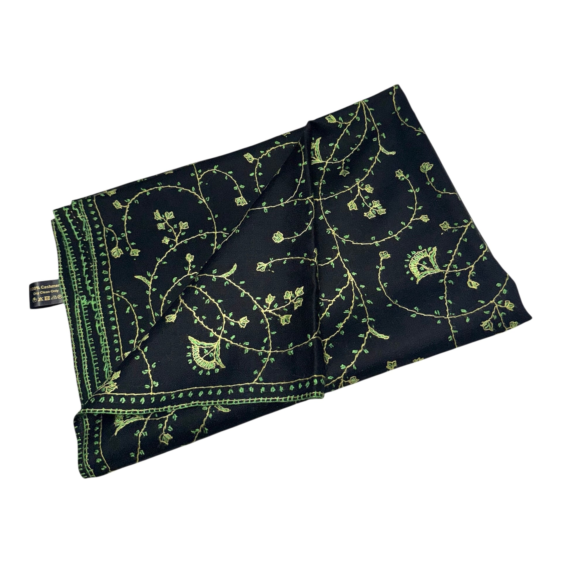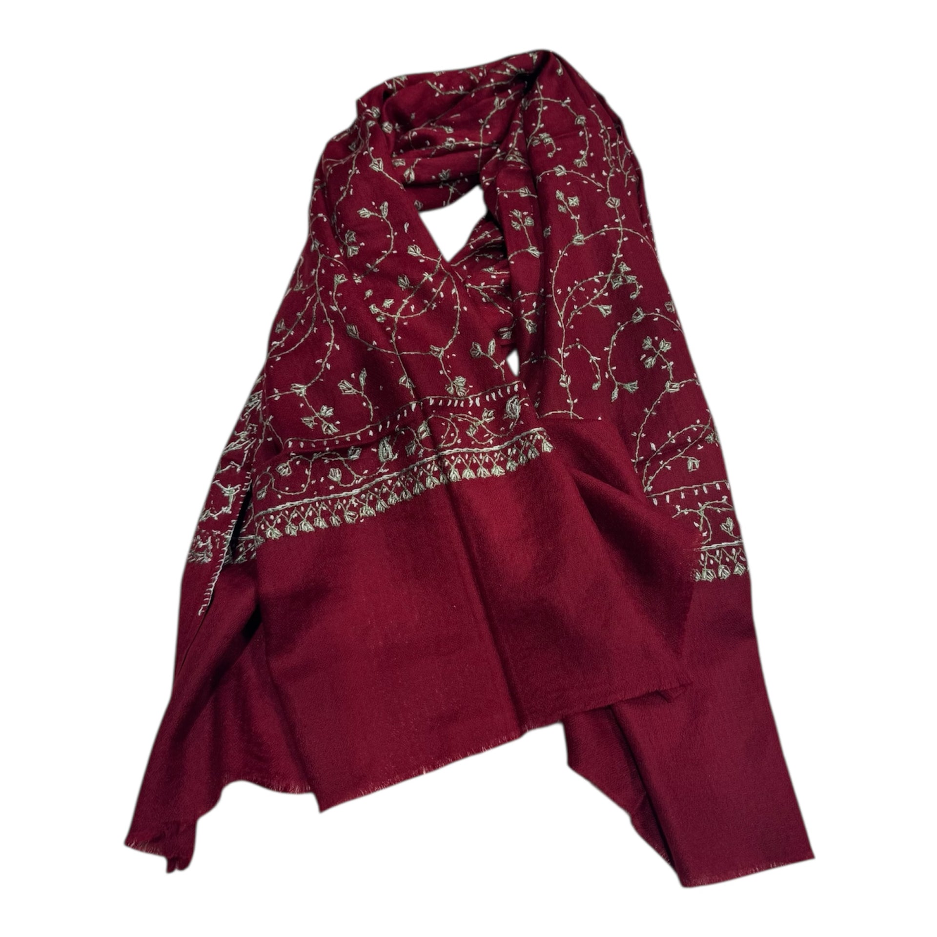 An original cashmere handwoven pashmina, using hand-spun thread and embroidered by hand. This is the work of the finest artisans of Kashmir. This elegant, warm, soft shawl will be your best friend on a cold day and will enhance any outfit, smart or casual. This product is soft to the touch, very lightweight and extremely warm. The wool comes from the soft downy undercoat of the Himalayan goats, necessary to keep them warm during the winters of the Ladakh Himalayan Mountains where temperatures are often 45 degrees below zero. The best wool comes from goats wintering above 3000 feet. In the spring, the goats shed their undercoat, which means this is a natural process and the nomads of the Himalayan region collect this undercoat by combing the goats. The wool is then spun, skilfully woven and embroidered – all by hand.