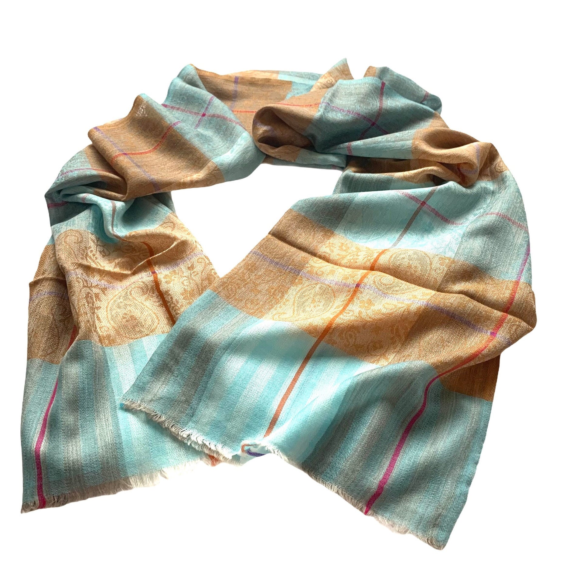 A gorgeous, elegant Stunning Scarf Checkered Paisley Jacquard Cashmere Scarf Wrap Shawl, skillfully woven. This cashmere Scarf is ultra-soft, lightweight and extremely warm.