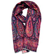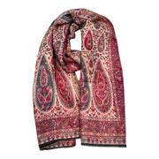 This gorgeous black multicoloured merino wool shawl features a reversible paisley design.