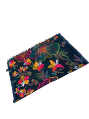 Charcoal floral Embroidered wool Scarf Shaw Wrap