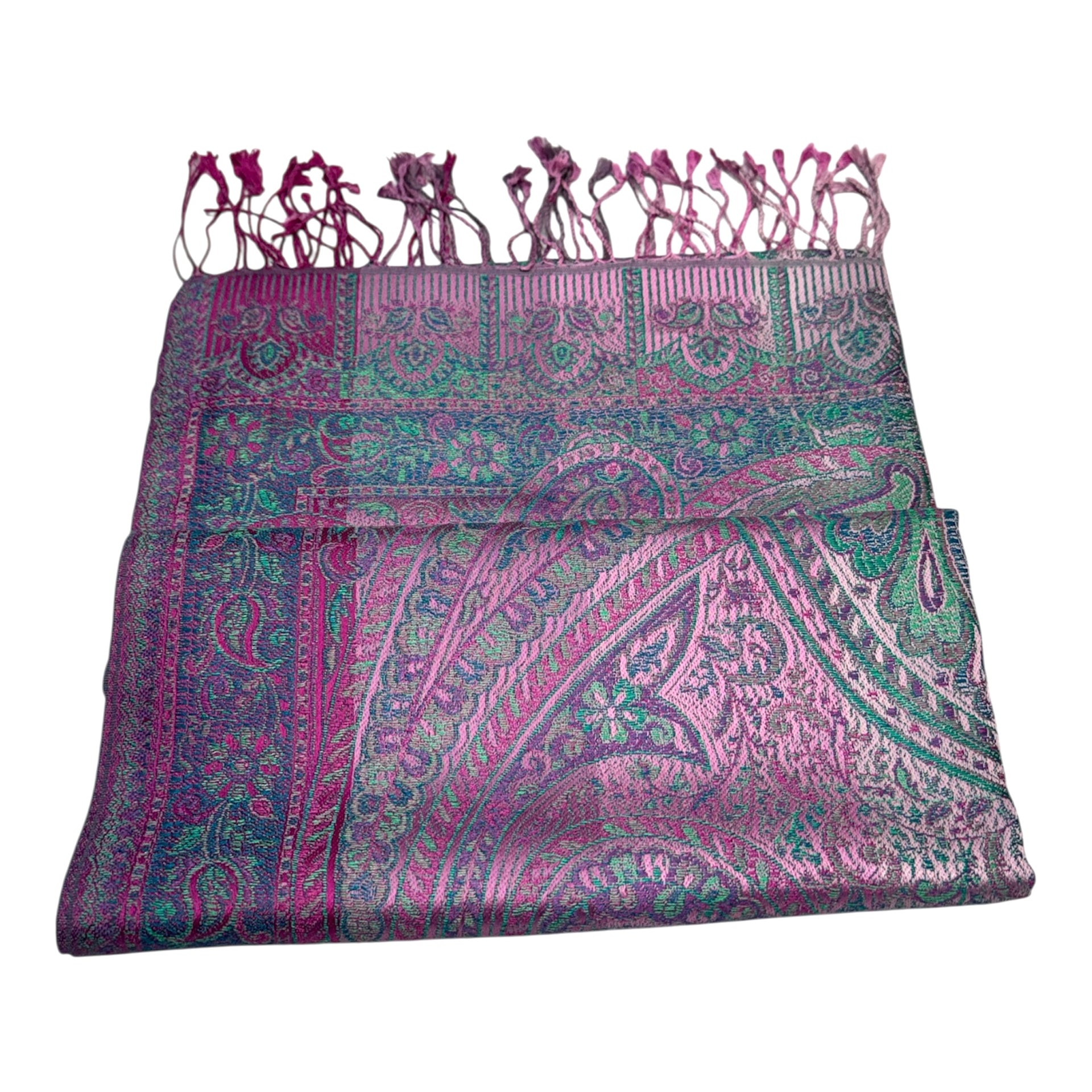 A Gorgeous Pink Multicoloured Silk Scarf Wrap Shawl skillfully woven with beautiful traditional paisley pattern from Kashmir.