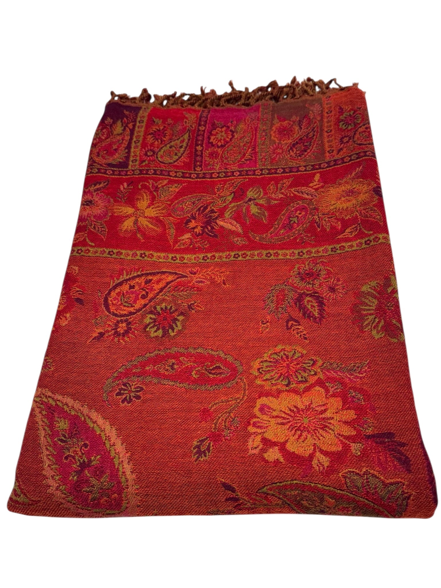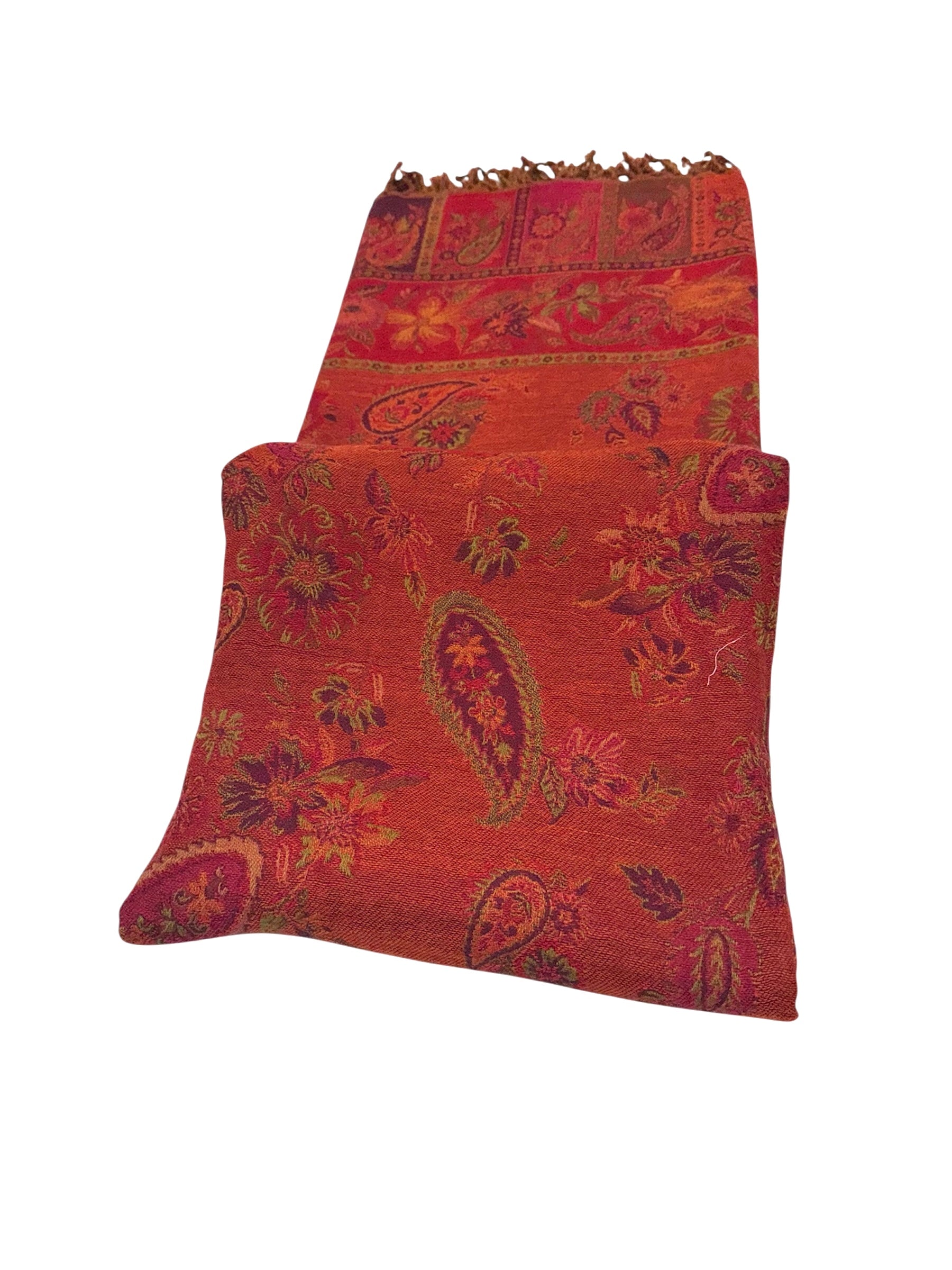 Red Paisley Kani Wool Pashmina Shawl Wrap Throw Blanket