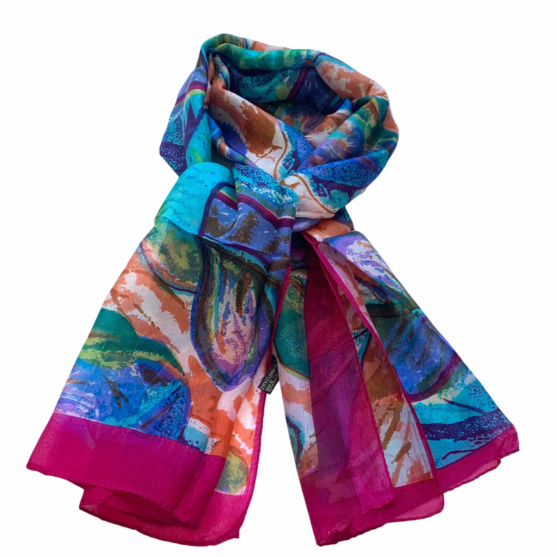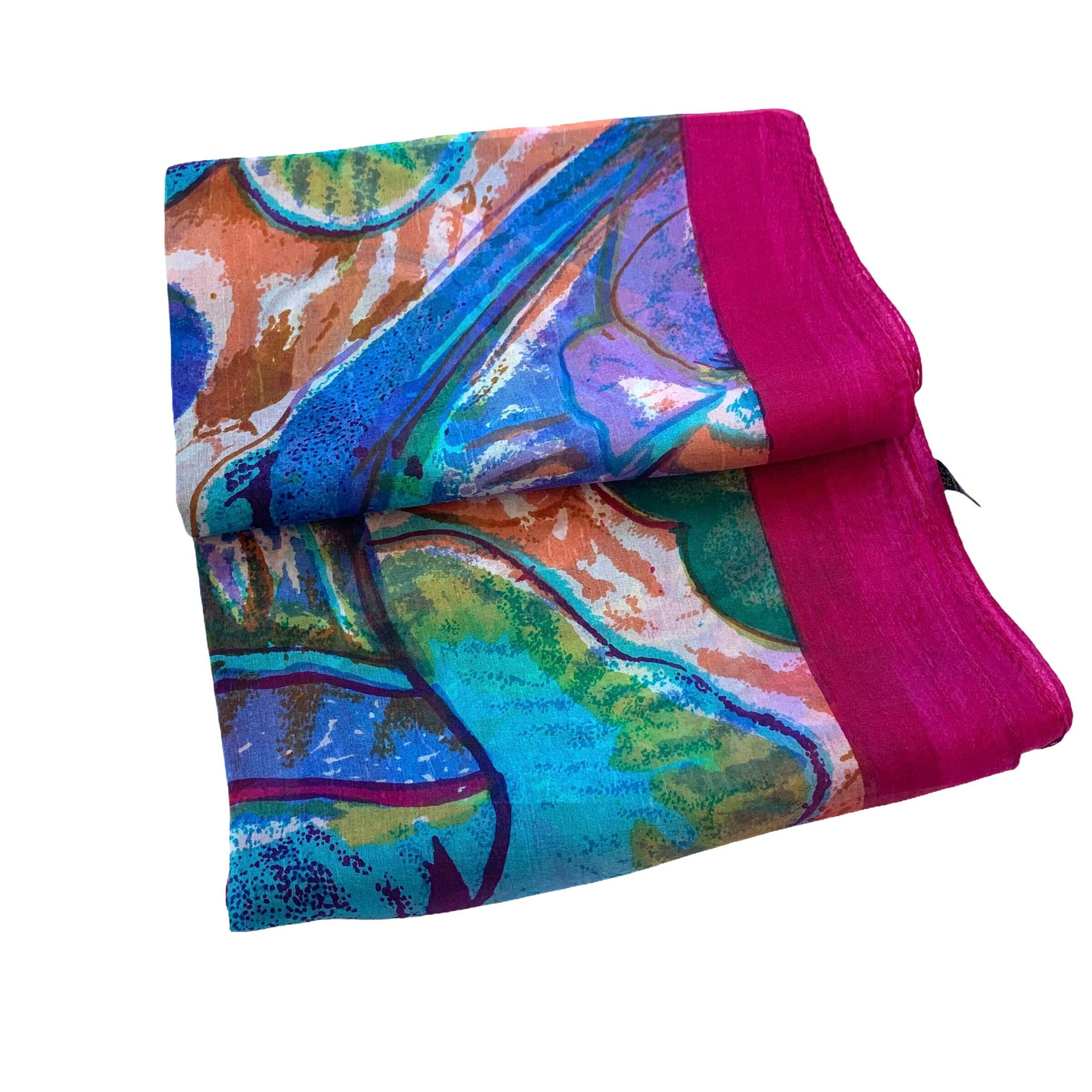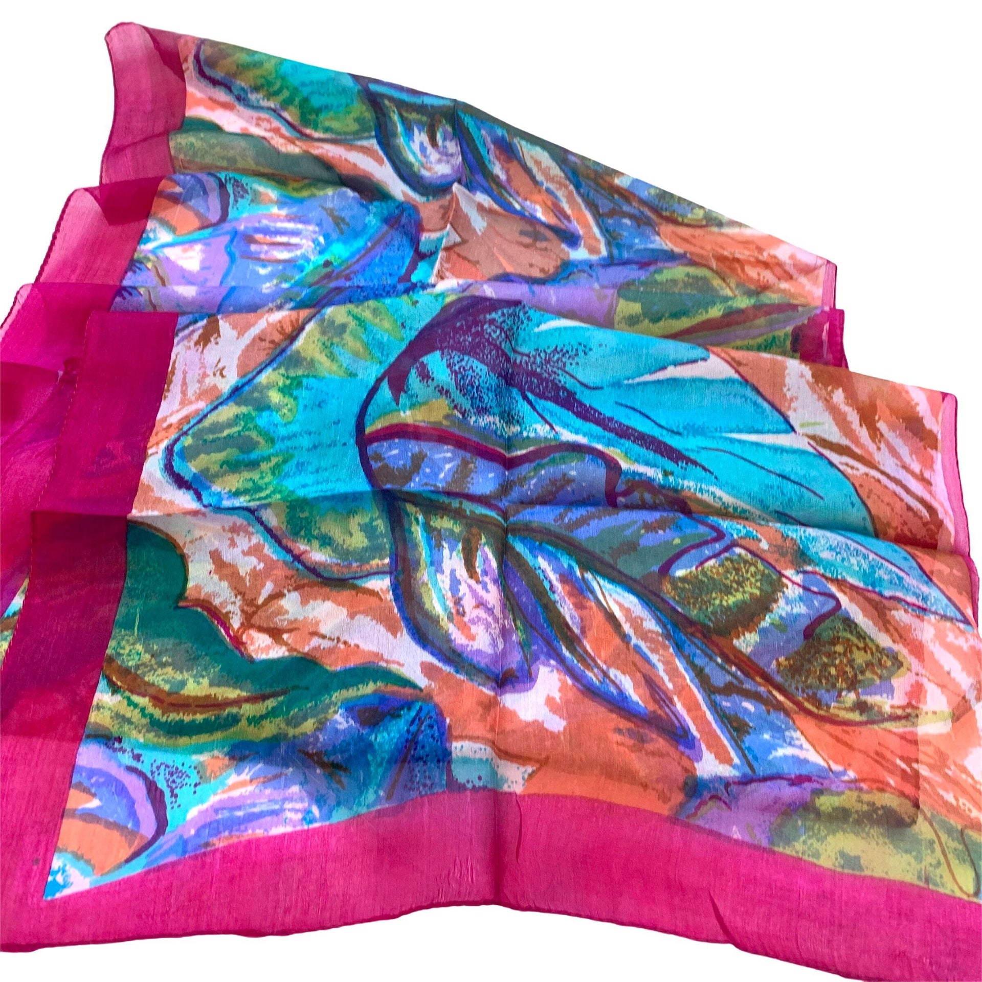 Magenta Silk Multicoloured with gorgeous leaf Design Silk Scarf /Stole/Neck Scarf/women Neck Scarf