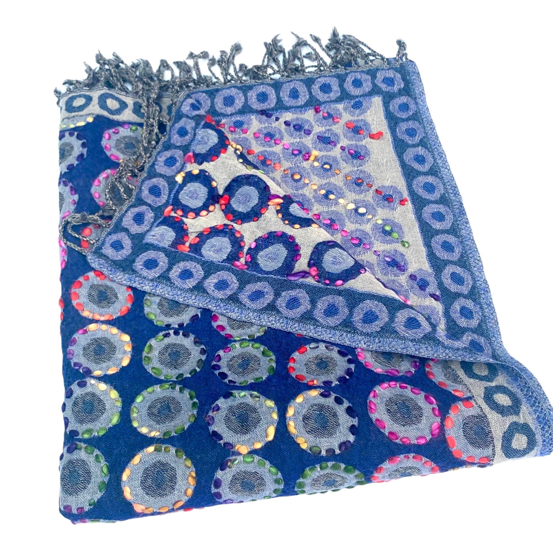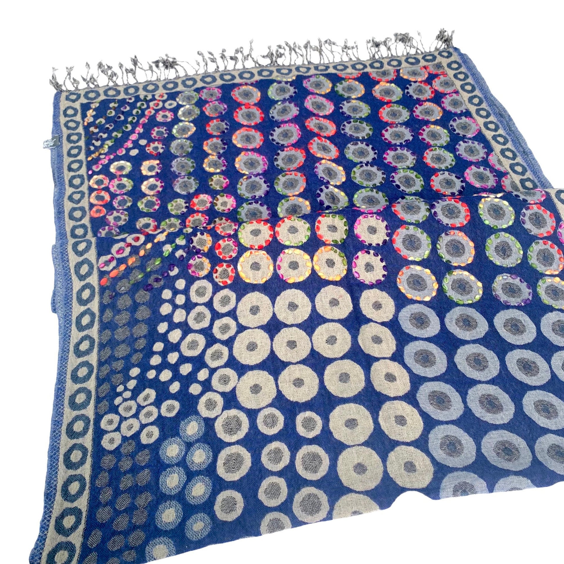 Gorgeous soft Snuggly hand embroidered boiled wool shawl With amazing circle design and multicolour Hand embroidered .
