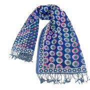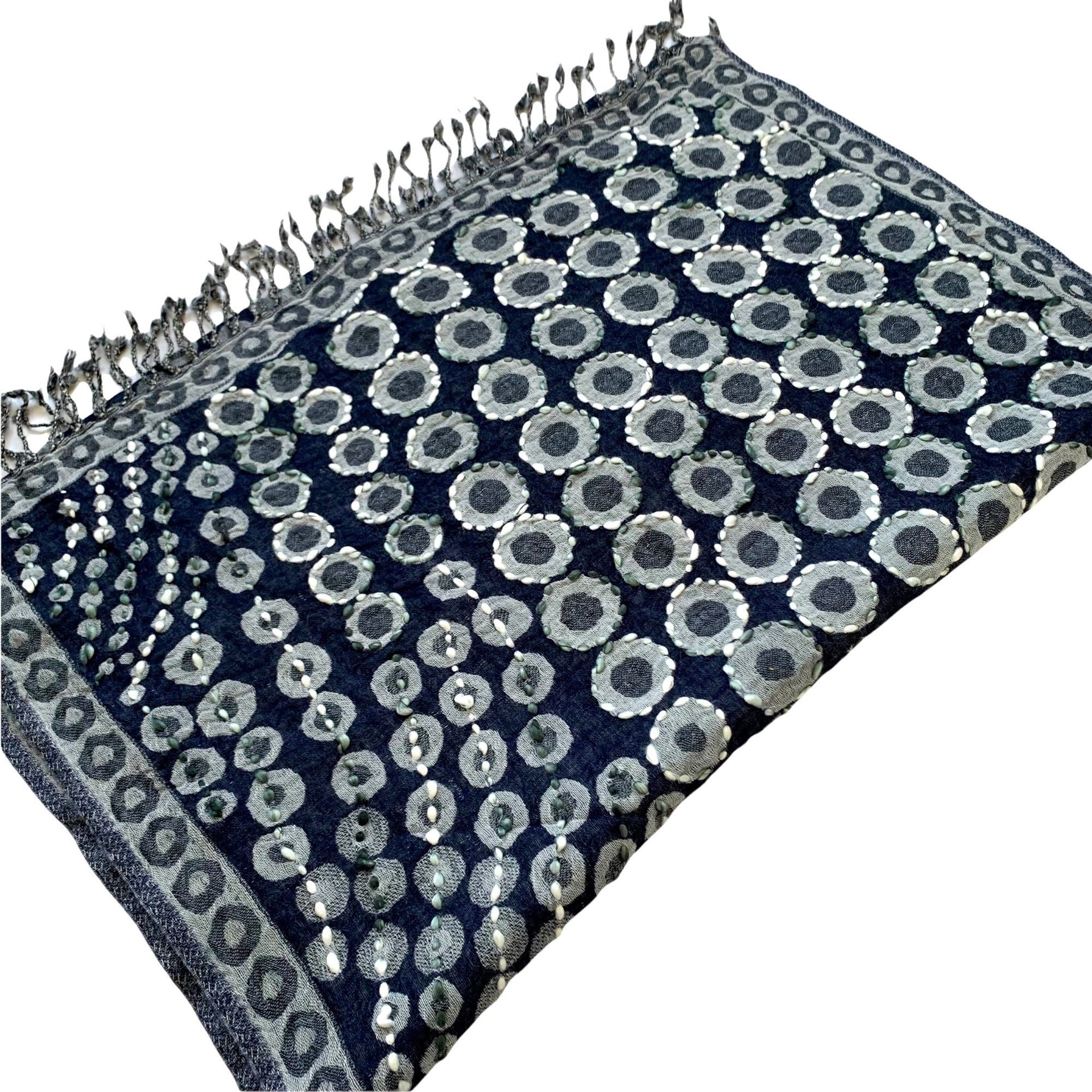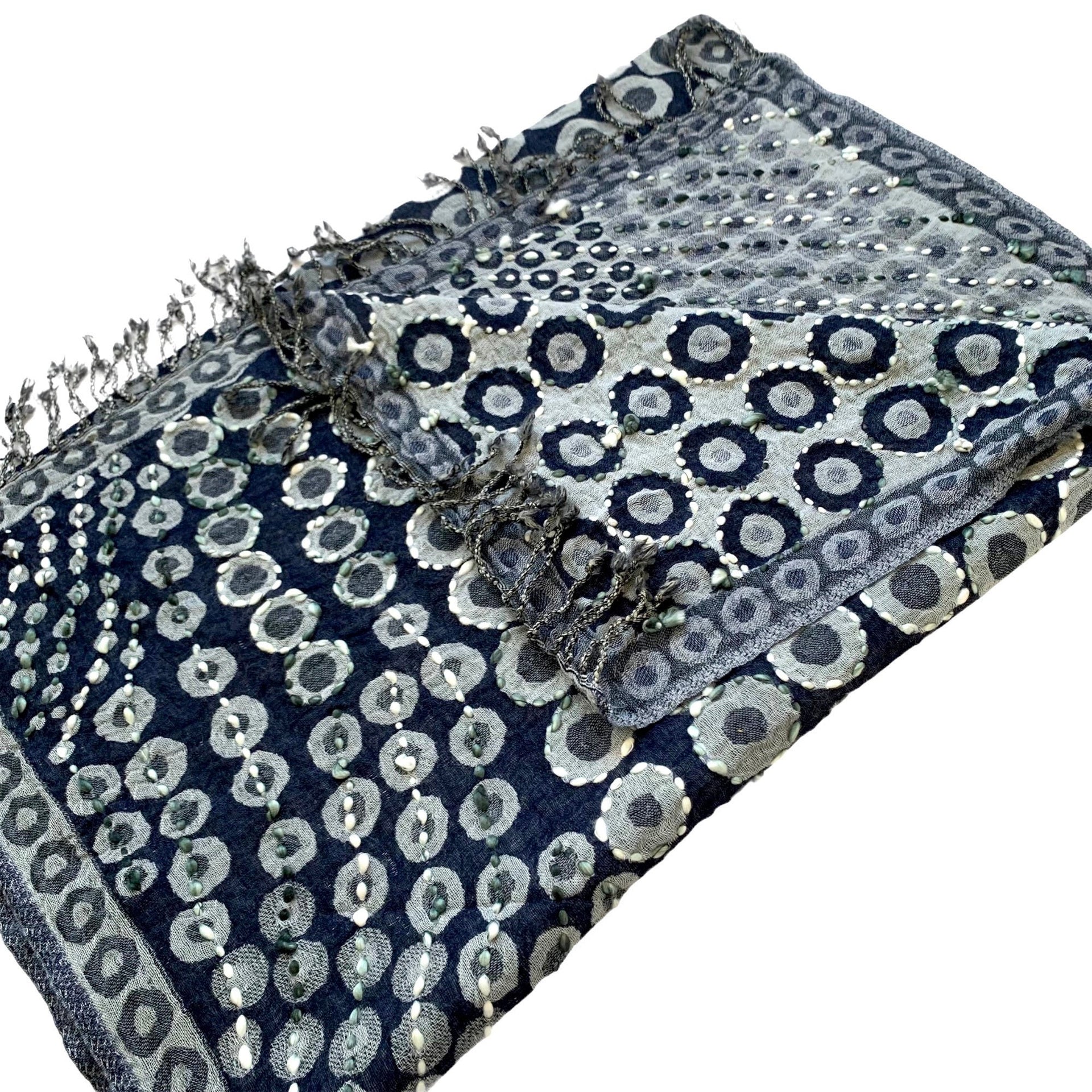 Gorgeous Denim cream Hand embroidered Boiled wool Shawl Scarf Wrap 28x80”inches